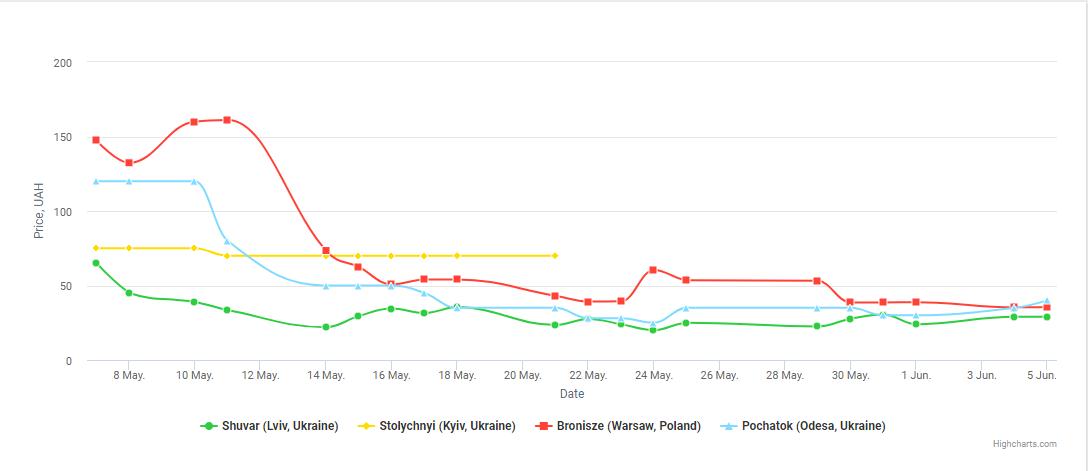 The strawberry season doesn’t last long, so in the short term, the cost of sweet berries will slowly grow due to the supply reduction. As for other food products, during May, Ukrainians could see an increase in the prices for most of them: beets (+66%), cabbage (+64%), carrots (+48%) and onions (+18%). However, this is a transitional period, which is observed annually - stocks of vegetables of the old yield are running out and a new harvest is coming to the market, which in the first months is rather «biting» in price, but with the growth of supplies volumes to the domestic market, prices will stabilize and fall closer to September.