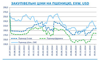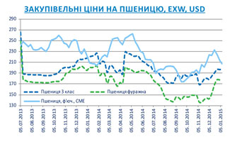 Після завершення новорічних свят на внутрішньому ринку панує різностороння тенденція закупівельних цін на пшеницю. Середні гривневі закупівельні ціни на пшеницю 3 класу на базисі EXW зросли на 1,6% (до 3150 грн./тонну), на фуражну - залишилась без змін на рівні 2800 грн./тонну.