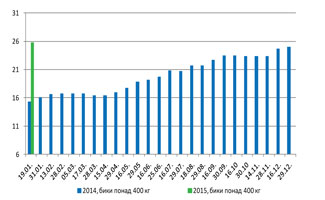 У другій половині грудня закупівельні ціни на ВРХ дещо знизились. Станом на 29 грудня биків 400+ закуповували за ціною 23,00-26,00 грн./кг (з ПДВ).
