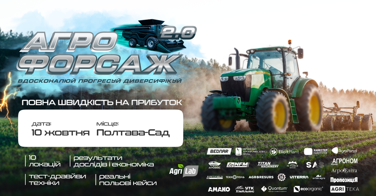 10 жовтня у ТОВ «Полтава-Сад» відбудеться другий масштабний аграрний захід «Агро Форсаж 2.0» – простір, де технології, бізнес та натхнення об’єднуються у форматі високої швидкості та практики.