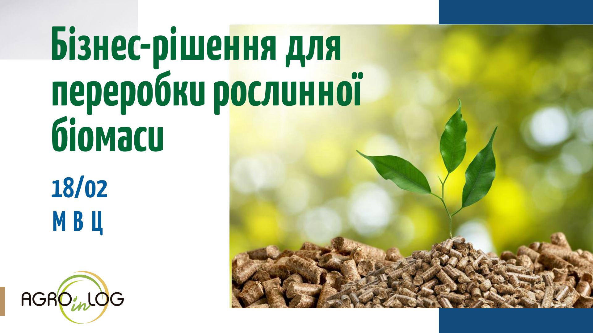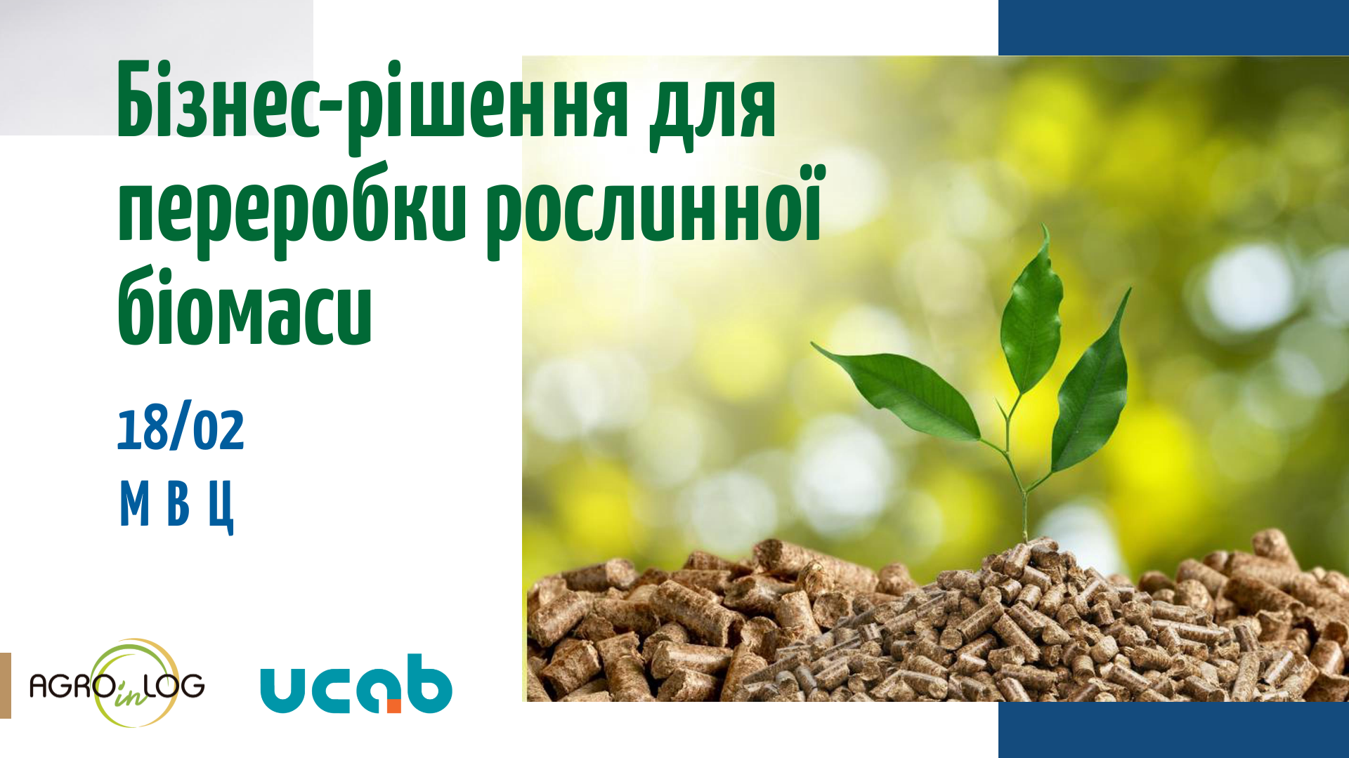 18 лютого 2020 року в рамках Міжнародної виставки АгроВесна 2020 Асоціація «Український клуб аграрного бізнесу», яка є партнером проекту AGROinLOG «Демонстрація інноваційних інтегрованих логістичних центрів біомаси для аграрного сектору в Європі» проводить практичний семінар на тему «AGROinLOG: бізнес-рішення для переробки рослинної біомаси».