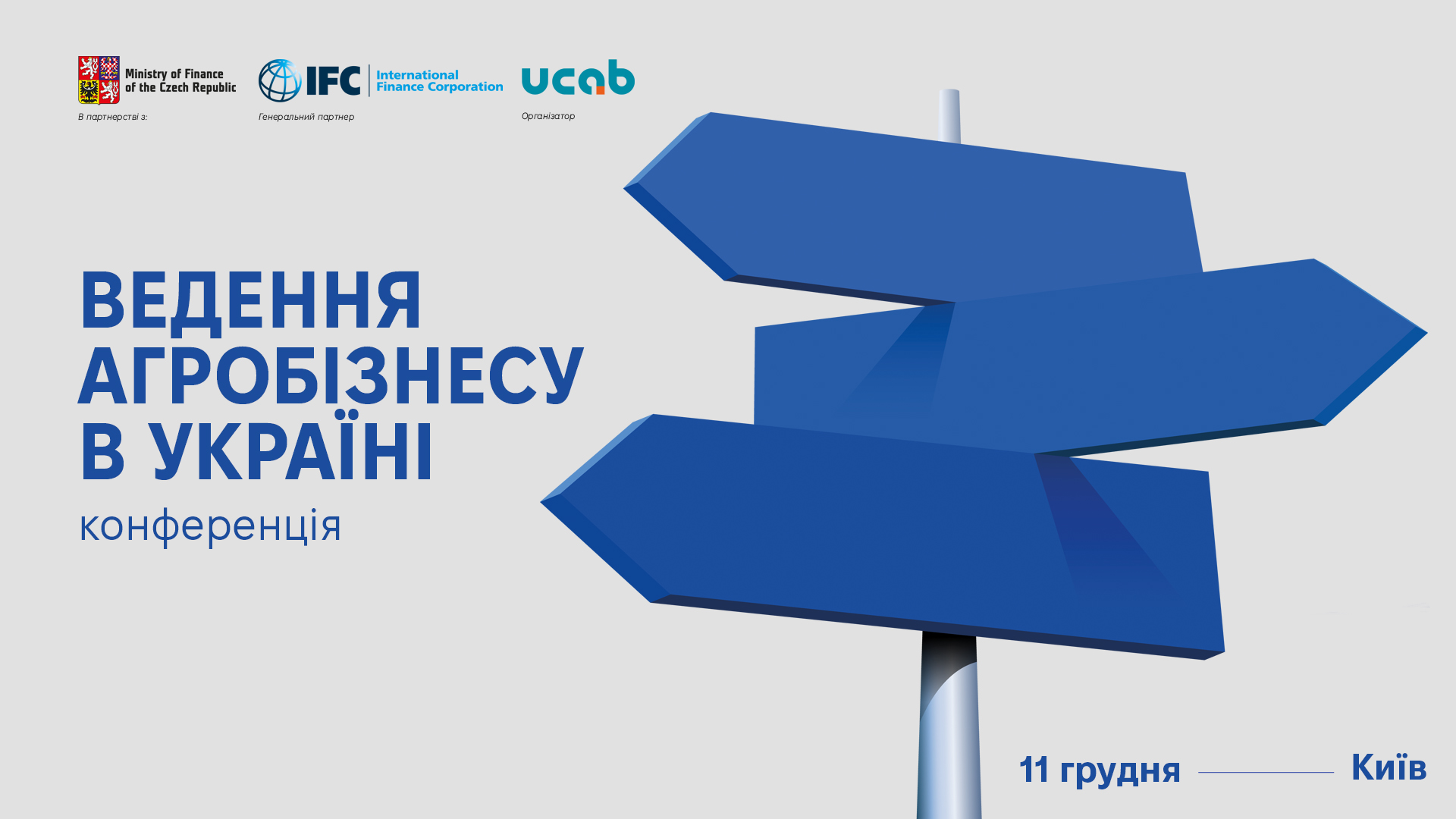 Асоціація «Український клуб аграрного бізнесу» cпільно з агенцією UCABevent 11 грудня в Києві проведуть ХVI Міжнародну конференцію «Ведення агробізнесу в Україні», де представники влади та бізнесу підсумують агрорезультати цього року та сформують інсайти наступного сезону. Генеральний партнер конференції — Міжнародна Фінансова Корпорація (IFC), що є підрозділом Групи Світового банку. IFC у партнерстві з Міністерством фінансів Чеської Республіки реалізовують проєкт «Підвищення стійкості агробізнесу», метою якого є сприяння інвестиціям в приватний сектор в сталі та стійкі харчові екосистеми в Україні та країнах Центральної і Східної Європи.