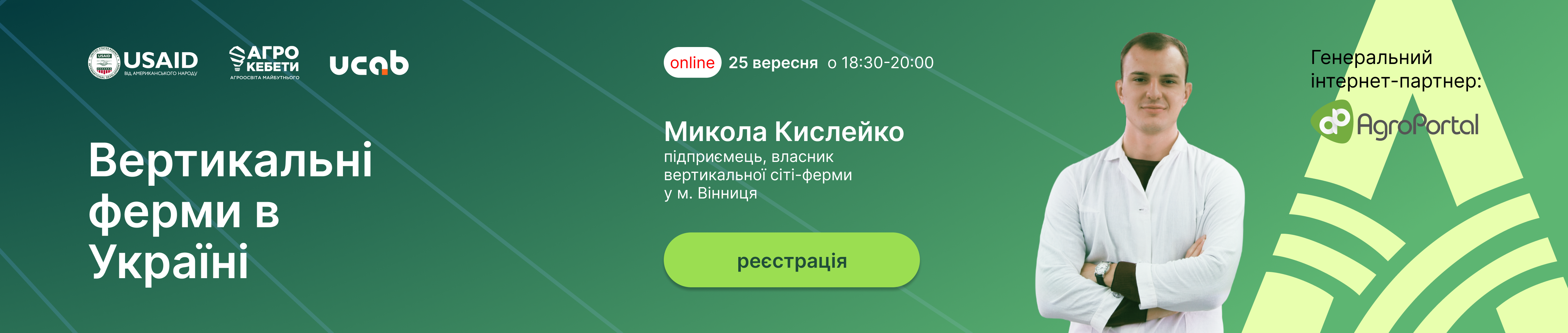 Спікер: Микола Кислейко, підприємець, власник вертикальної сіті-ферми у м. Вінниця