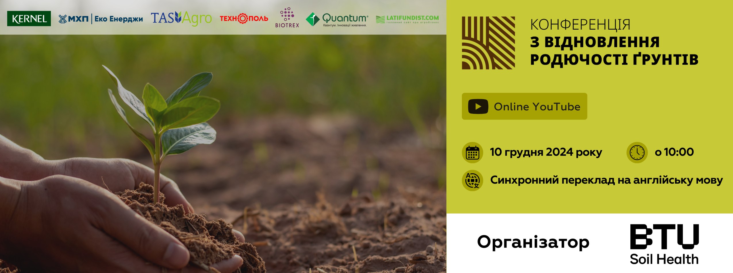 Конференцію з відновлення родючості ґрунтів вже вп'яте організовує біотехнологічна компанія BTU. Цього року учасники й учасниці сфокусуються не лише на впливі війни, а і на кліматичних змінах, вимогах євроінтеграції та нових практиках відновлення ґрунтів.
