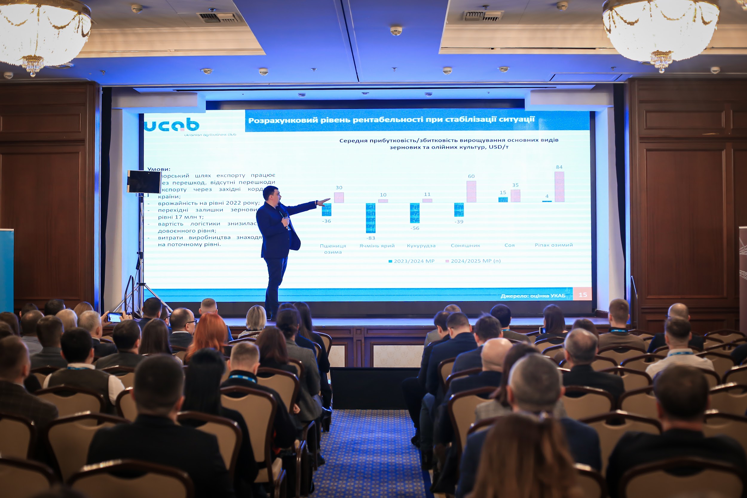 Наступною презентацією «Аграрний 2023: підсумки та прогнози» генеральний директор УКАБ Олег Хоменко ознайомив присутніх з результатами дослідження «Вплив війни на прибутковість сільськогосподарського виробництва», розповівши, якою є ситуація з прогнозованими перехідними залишками на кінець маркетингового року, котрі з культур більш рентабельні та якими є перспективи щодо посівної й забезпеченості основними виробничими ресурсами.