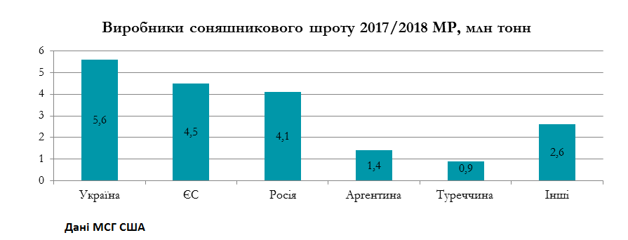 Ключовими світовими виробниками соняшникового шроту вже впродовж кількох років залишаються Україна, ЄС та Росія. При цьому, Україна залишає за собою пальму першості серед основних експортерів соняшникового шроту та покриває 38% світового попиту на цей продукт. Наразі основними споживачами соняшникового шроту на світовому ринку є країни ЄС та Туреччина. Проте, зважаючи на зростаючий попит на цей продукт зі сторони Китаю, ситуація в найближчі роки може суттєво змінитися.