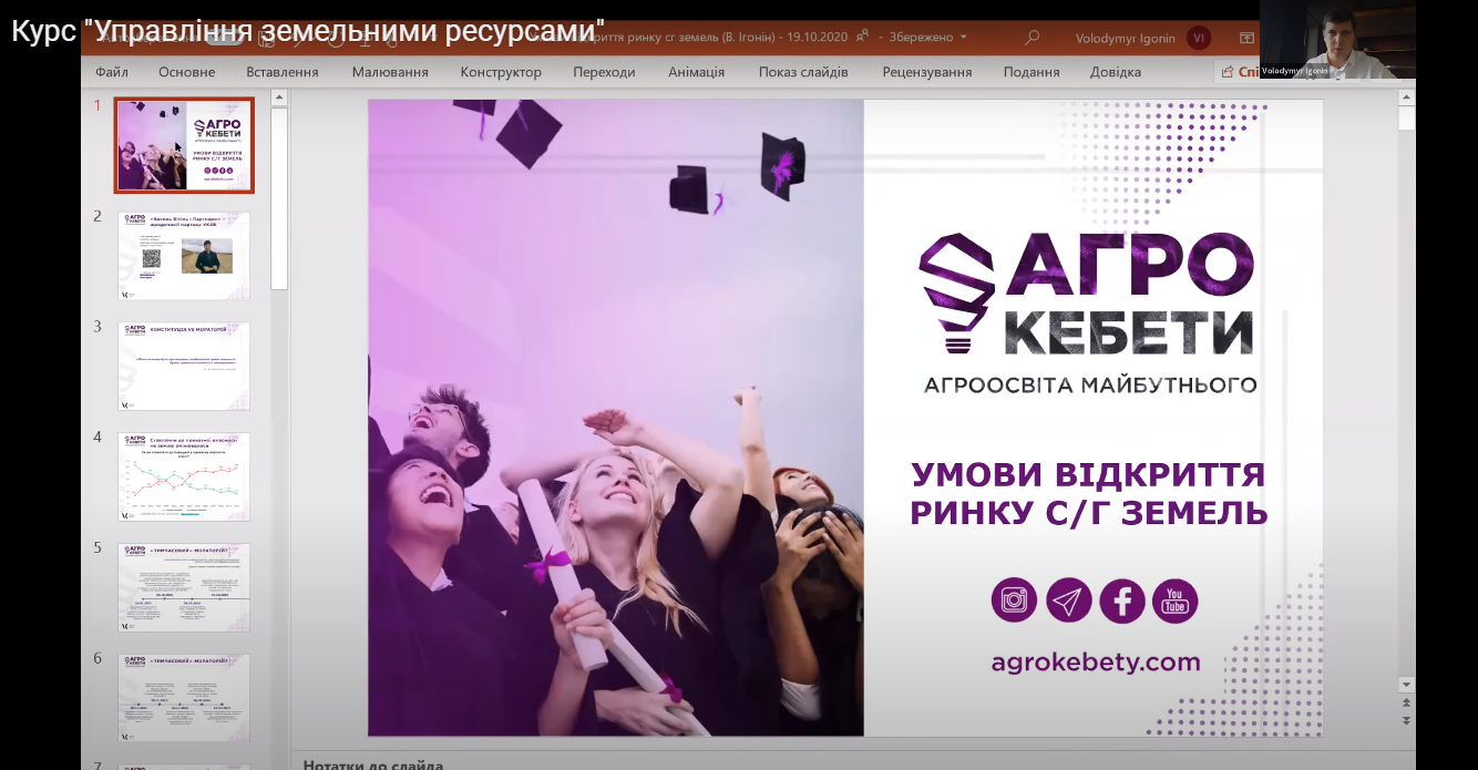 Протягом трьох лекцій блоку слухачі довідались про умови відкриття ринку сільськогосподарських земель, про юридичний аудит земельних договорів та отримали інструменти боротьби із земельним рейдерством.