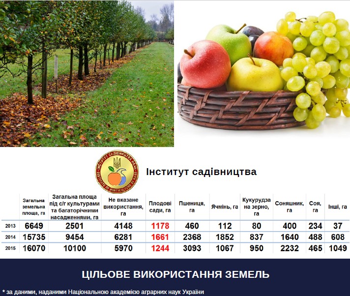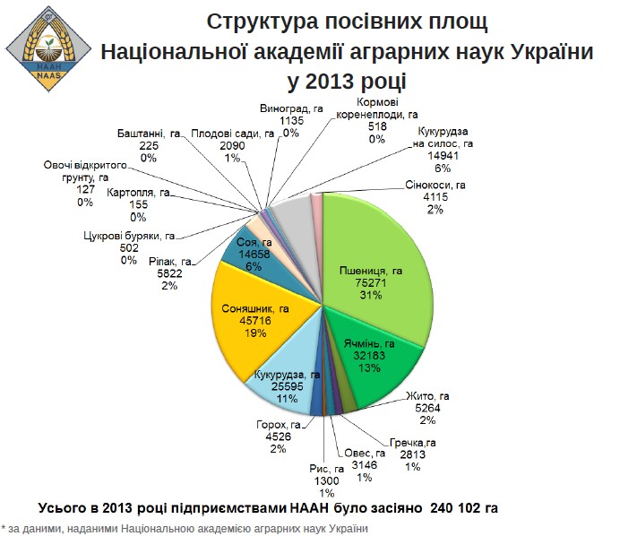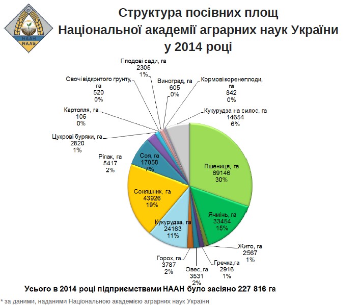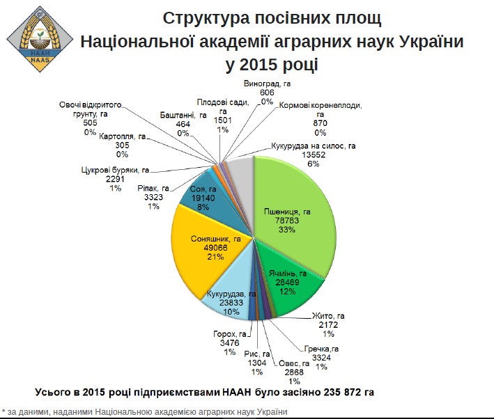 Національна академія аграрних наук України надала інформацію про вирощування продукції рослинництва науковими установами НААН за 2013-2015 рр.