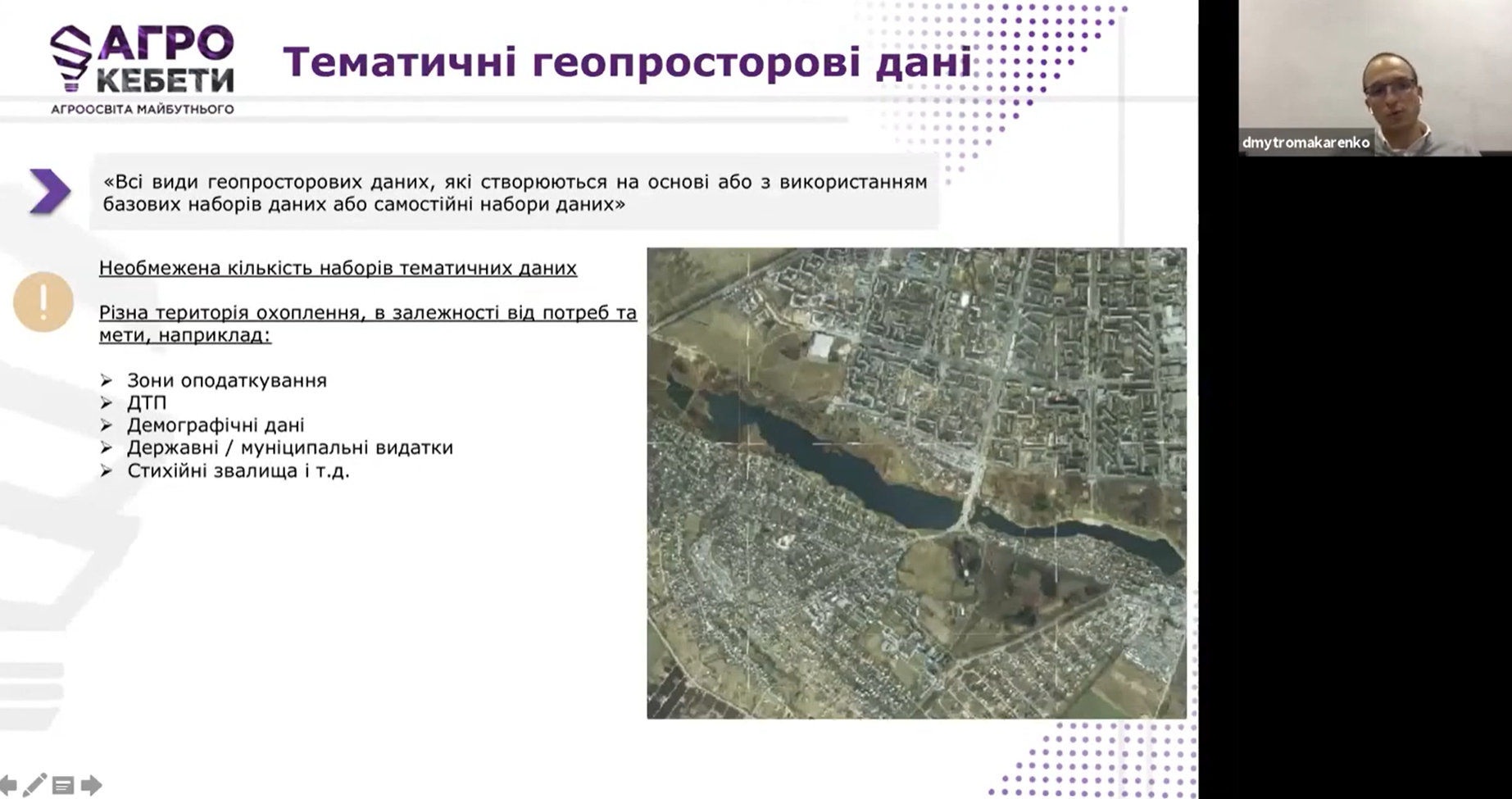 Спікером лекції 30 жовтня став Дмитро Макаренко, експерт за питань геопросторових даних та екс-директор Департаменту міжнародної співпраці та ринку земель Держгеокадастру. Він прочитав надзвичайно цікаву лекцію про геопросторові дані та, звичайно, про українську Національну інфраструктуру геопросторових даних: що це, навіщо це потрібно і як використовувати геопросторові дані у бізнесі та на державному рівні.