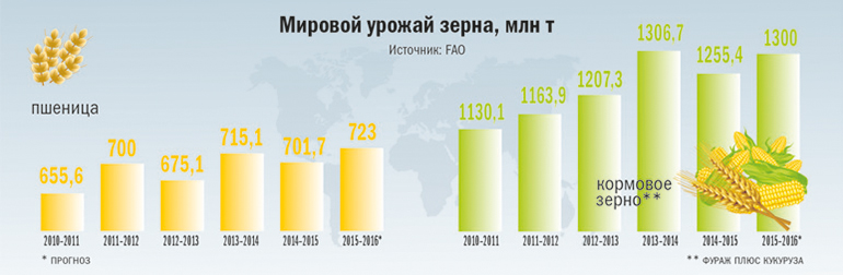 В следующем маркетинговом году ситуация на мировом рынке зерна будет не столь плачевной, как в этом. По прогнозам FAO, урожай основных зерновых культур обещает быть вполне сносным. К примеру, пшеницы на международные биржи должны поставить 723 млн т против прошлогодних 701,1 млн т. Урожай кормового зерна (фураж и кукуруза) составит 1,3 млрд т, что почти на 45 млн т больше, чем в минувшем году. Прибавку обеспечат США и ряд европейских стран. К примеру, в ЕС сложились настолько благоприятные погодные условия (мягкая зима, высокая увлажненность почвы), что тамошние аграрии рассчитывают собрать третий по величине урожай за последние несколько десятилетий (почти 148 млн т). А учитывая удешевление евро, стоимость европейского зерна будет более привлекательной для иностранных покупателей, прогнозирует агентство Bloomberg, по данным которого экспорт зерна из ЕС в новом сезоне составит порядка 34 млн т.