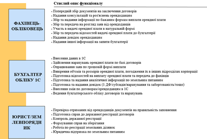 — організаційну модель роботи із земельними активами;